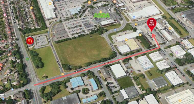 We are located just off the A41 New Chester Road, Bromborough, four miles south of Birkenhead town centre by Croft Retail Estate. We are on Dinsdale Road off Caldbeck Road.